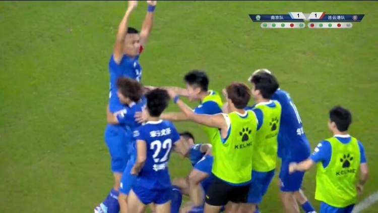 柳烨主罚点球命中扳平比分,连云港1-1南京。↓