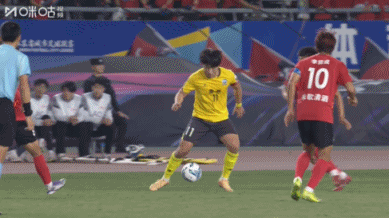第24分钟,南通队球员程鑫拼抢时踩到巴特脚面,马宁向其出示黄牌警告。↓