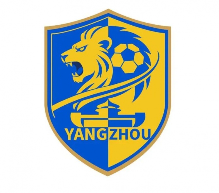 盾形寓意坚如磐石,蓝黄交织象征忠诚睿智与辉煌荣耀。整体如大运之舟扬帆,承载扬州足球梦想,乘风破浪、奔赴荣光。